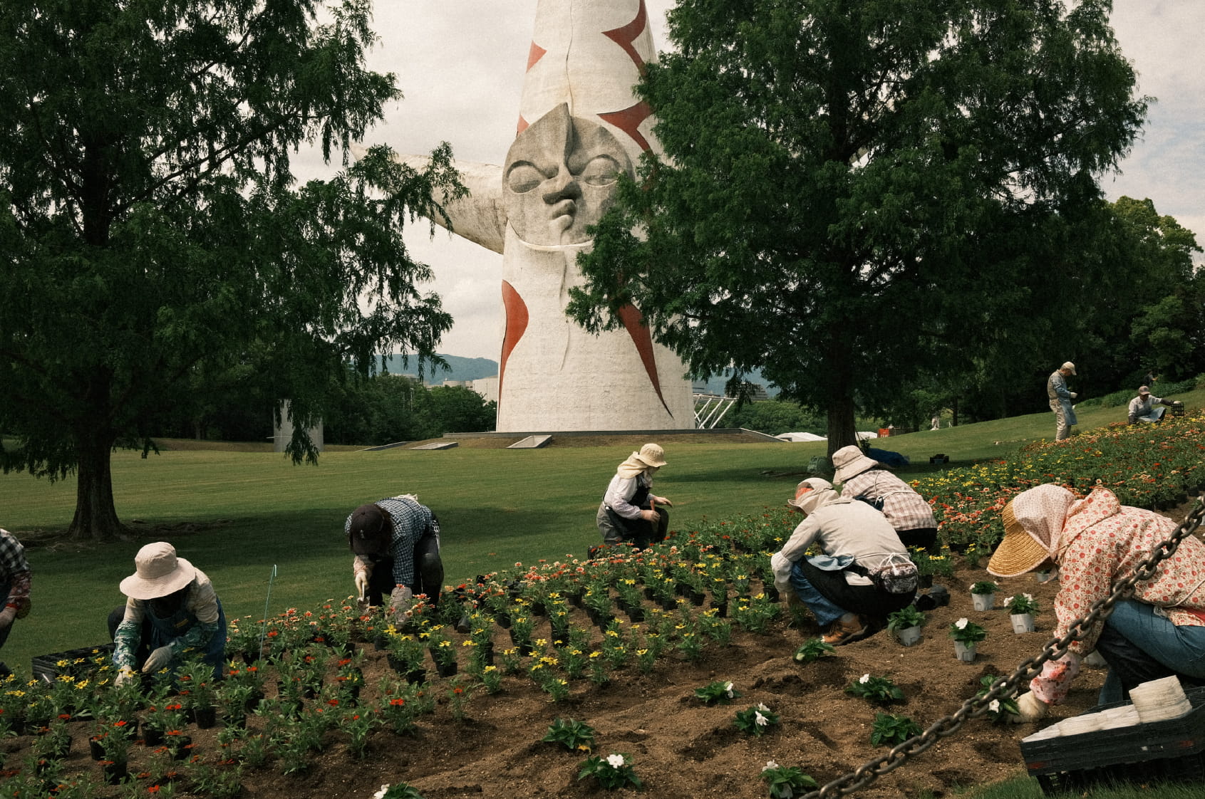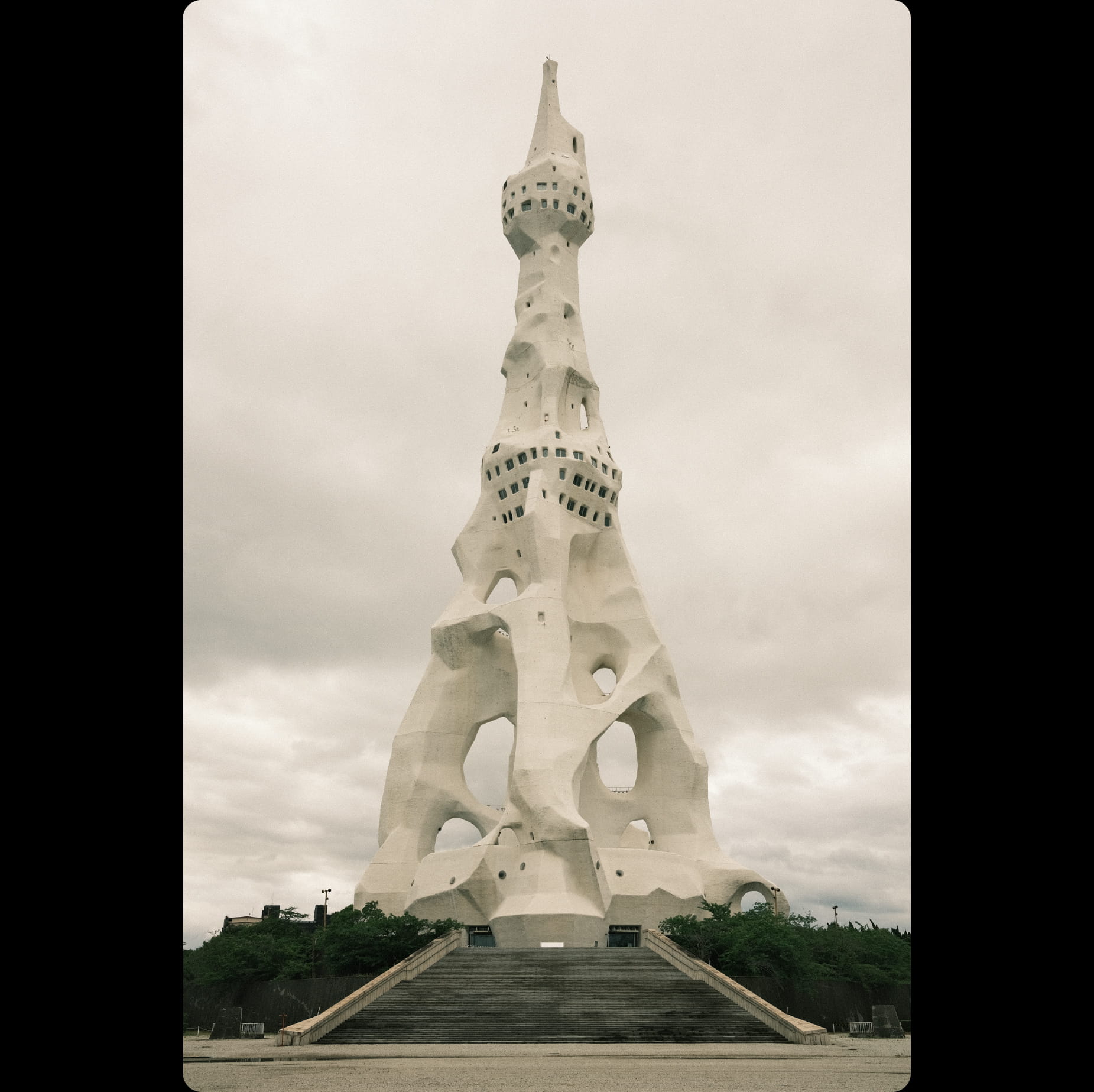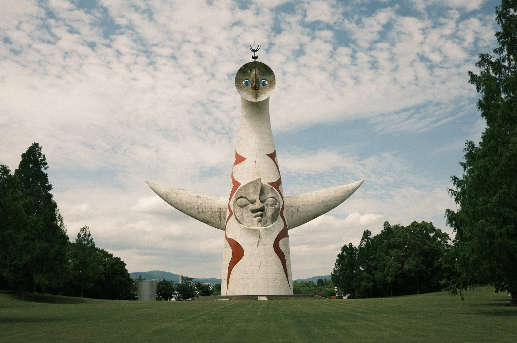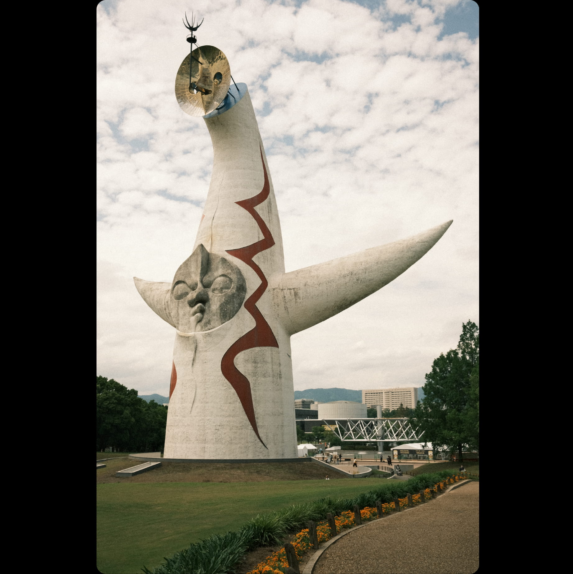 One of the buildings is the PL White Tower, and the other is the Tower of the Sun (by Taro Okamoto) at the entrance to the old Expo site from 1970.